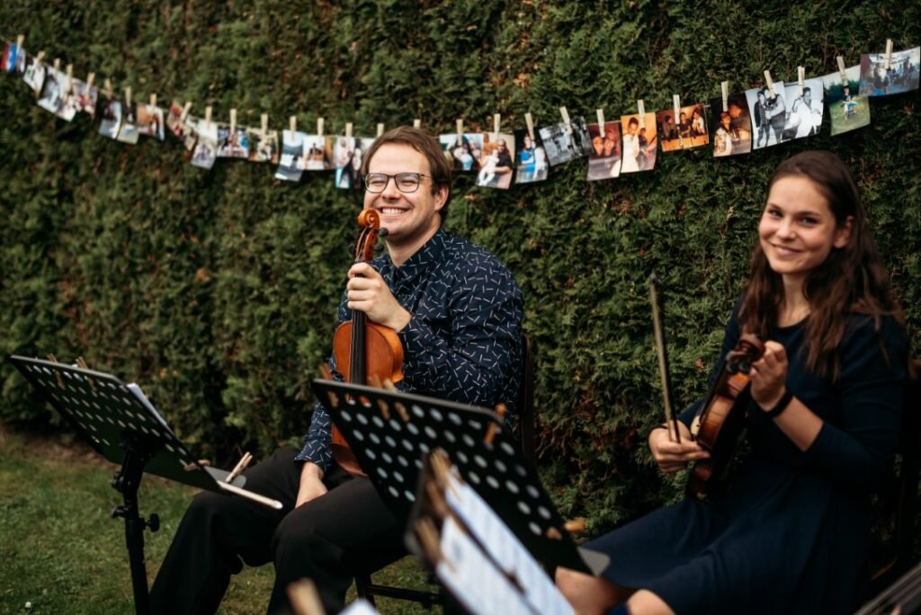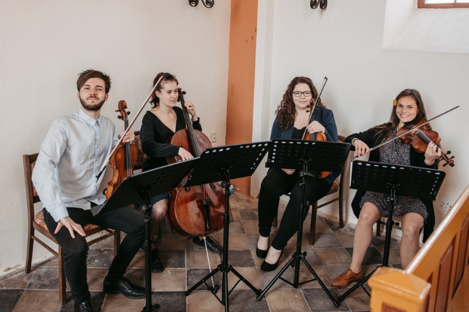 Pokud toužíte po velkolepém doprovodu vašeho obřadu, čtyři smyčce jsou vaše volba. Nejsilnější zvuk, který zároveň dodá svatbě tu pravou eleganci.