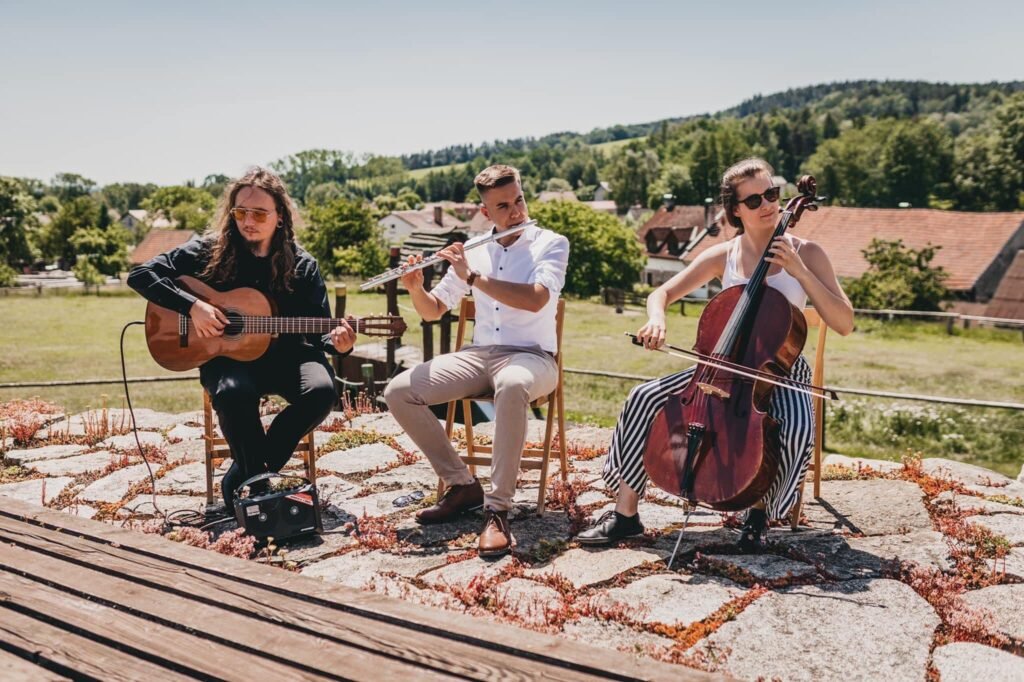 Jsme parta několika profesionálních muzikantů, studentů konzervatoře či učitelů hudby. V současné době od nás můžete slyšet housle, violu, violoncello, piano, kytaru nebo flétnu. Působíme převážně v Jižních Čechách, ale nebojíme se vyrážet i do vzdálenějších míst. Hrajeme skladby od klasické hudby po nejnovější hity!